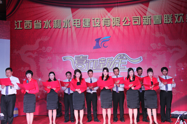 玉兔辭舊歲,瑞龍迎新春。1月18日,江西省水利水電建設有限公司2012年迎新春聯歡會在南昌市新東方大酒店隆重舉行,來自公司總部、國內外分公司、各專業公司、施工項目部的300余名管理人員及員工歡聚一堂,共賀新春。