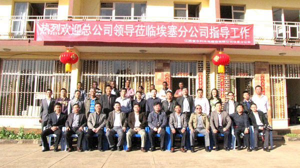 2013年2月12日,農歷大年初三,新春伊始,公司董事長、總經理王元旦率領部分高層管理人員和部分部門負責人一行13人來到埃塞俄比亞,給埃塞分公司員工帶來了新春的祝福和慰問,并現場召開了“江西省水利水電建設有限公司海外工作會議”,會議由張周平副總經理主持。
