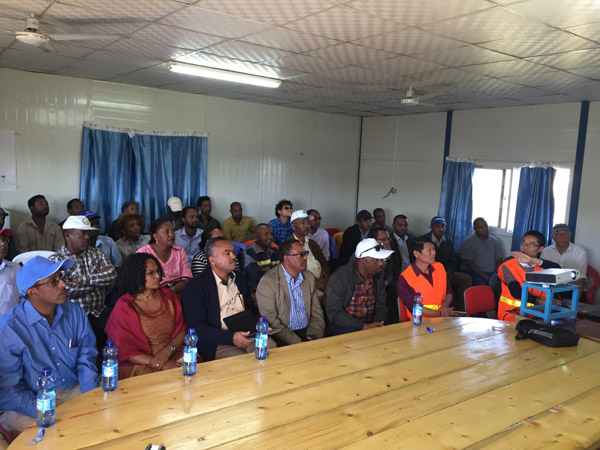 部長一行于上午10時許抵達(dá)后,在我項目部主營地召開了現(xiàn)場會議,埃塞公司副總經(jīng)理兼項目經(jīng)理黃生寶詳細(xì)的介紹了項目的進展情況及六大施工管理區(qū)的實施情況。并表示,盡管面臨著工期縮短、征地困難等諸多阻礙,我司一定會團結(jié)各方、迎難而上,完成施工任務(wù)為埃塞水利發(fā)展貢獻力量。