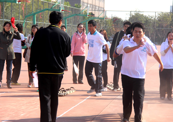 本屆趣味運動會以“快樂運動?健康生活”為主題,共設排山倒海、袋鼠跳、夾球接力、同舟共濟、綁腿接力、險灘接力、呼啦圈接力、4×100米接力等八個比賽項目。我公司選派的37名運動員參加了全部8個比賽項目,并取得了同舟共濟、袋鼠跳兩個項目第一名,夾球接力項目第二名,以及呼啦圈接力、排山倒海、4×100米接力三個項目第三名的好成績。我公司以6塊獎牌總數在十支參賽隊伍中名列獎牌榜第一。