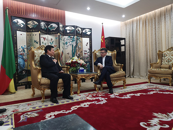 此外,在貝寧期間,公司董事長一行分別拜訪了中國駐貝寧大使館大使彭驚濤先生和經濟商務參贊處參贊張伯輝先生,受到大使及參贊的親切接見。董事長向大使及參贊匯報了項目進展情況,由衷感謝其對項目的大力支持和指導,并表示公司將進一步積極推進項目,有信心、有決心做好項目。大使與參贊對我公司長期扎根海外、勇于開拓進取、積極承擔社會責任等方面予以充分肯定,認為貝寧韋梅河流域多功能水壩項目是實實在在的民生項目,希望項目能夠早日開工,發揮最大的社會效益和經濟效益,成為中國“走出去”的示范項目。