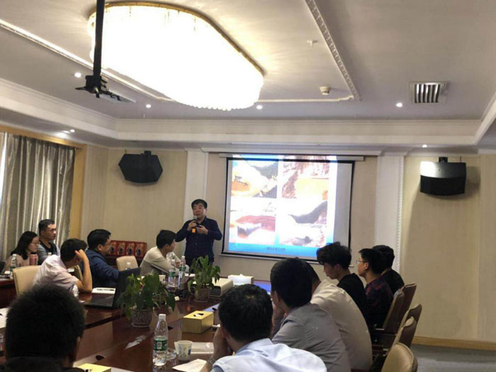 現(xiàn)場參觀結(jié)束后,學習團參加了技術(shù)培訓和經(jīng)驗交流會。總經(jīng)理助理杜凌主持了開班儀式。總工程師胡鴻煌、項目副經(jīng)理李成,對洋前壩水庫的大壩總布置、大壩施工導流、大壩及供水管道施工技術(shù)細節(jié)等,通過文字、圖片、視頻等組成的PPT課件為學員授課,并就學員提出的問題逐一進行了解答。